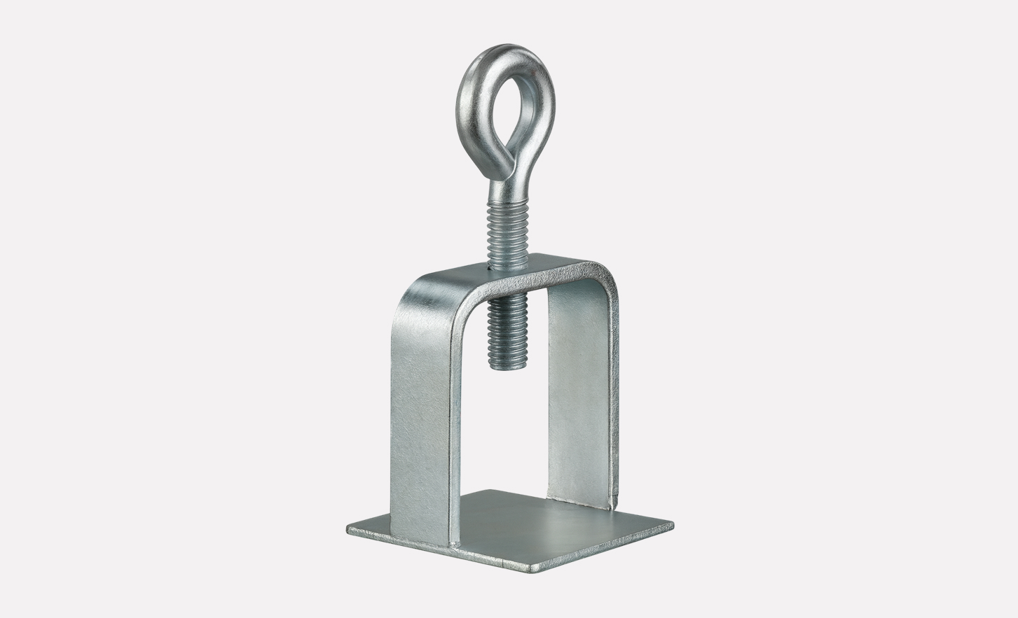 Galvanized metal sign clamp, suitable for fastening 40 × 40 mm square tubes and Ø42 mm round tubes. Designed for secure mounting on round and square tubes.